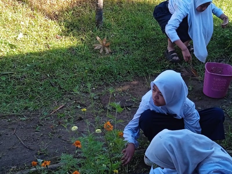 Kegiatan dimulai tepat setelah upacara bendera dan sesi halalbihalal singkat. Sambil saling memaafkan, kami semua bersiap dengan peralatan kebersihan masing-masing. Menariknya, kegiatan bersih-bersih ini justru menjadi ajang silaturahmi yang seru. Sambil menyapu dedaunan yang menumpuk di halaman dan beberapa siswa mencabut rumput, terdengar gelak tawa siswa yang saling bertukar cerita tentang pengalaman mudik antar desa hingga keseruan Mencicipi hidangan lebaran di rumah sanak saudara.